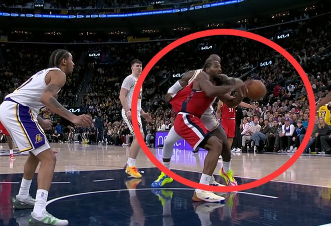 北京時間12月21日,相比于墊腳祖巴茨,詹姆斯還有更大的爭議動作出現(xiàn),一個回合4次對萊昂納德犯規(guī),裁判硬生生一次都沒吹。